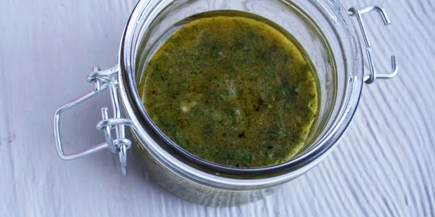 Món xốt nhẹ nhàng với chút tỏi này rất hợp với cá, salad mì ống hoặc một món rau cải ngọt chứa nhiều chất dinh dưỡng. Để thực hiện, cắt nhỏ ½ gói mùi tây sau đó cho vào bát nhỏ với 1 thìa cà phê mù tạt Dijon, 1 thìa canh giấm sherry, ½ tép tỏi xay và 3 thìa canh dầu ô liu nguyên chất.